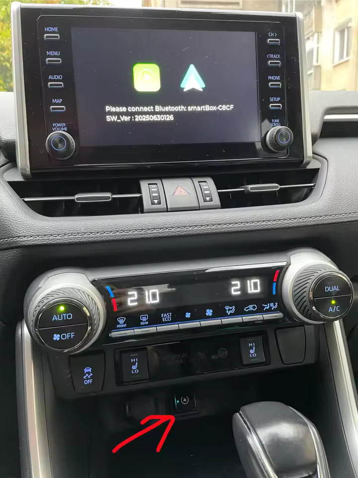 Cihazı aracınızın USB veya Type-C girişine takın, telefonunuzun Bluetooth ve Wi-Fi bağlantısını açın.